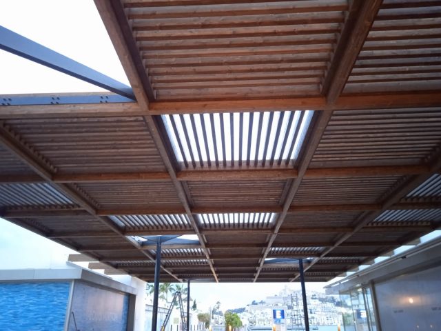 ICL proyecta una nueva terraza con un diseño novedoso de pérgola en Marina Ibiza.